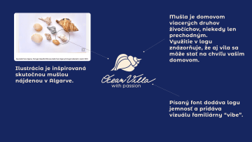 Logo také pracuje s metaforou mušle jako přechodného domova některých živočichů - stejně tak se vila stane přechodným domovem pro své zákazníky.