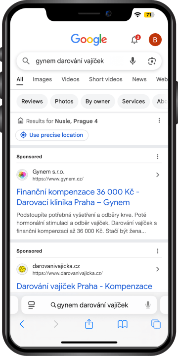 Vyhledávací reklama se zobrazuje přímo ve výsledcích vyhledávání, když uživatel zadá konkrétní dotaz související s vaším produktem nebo službou.